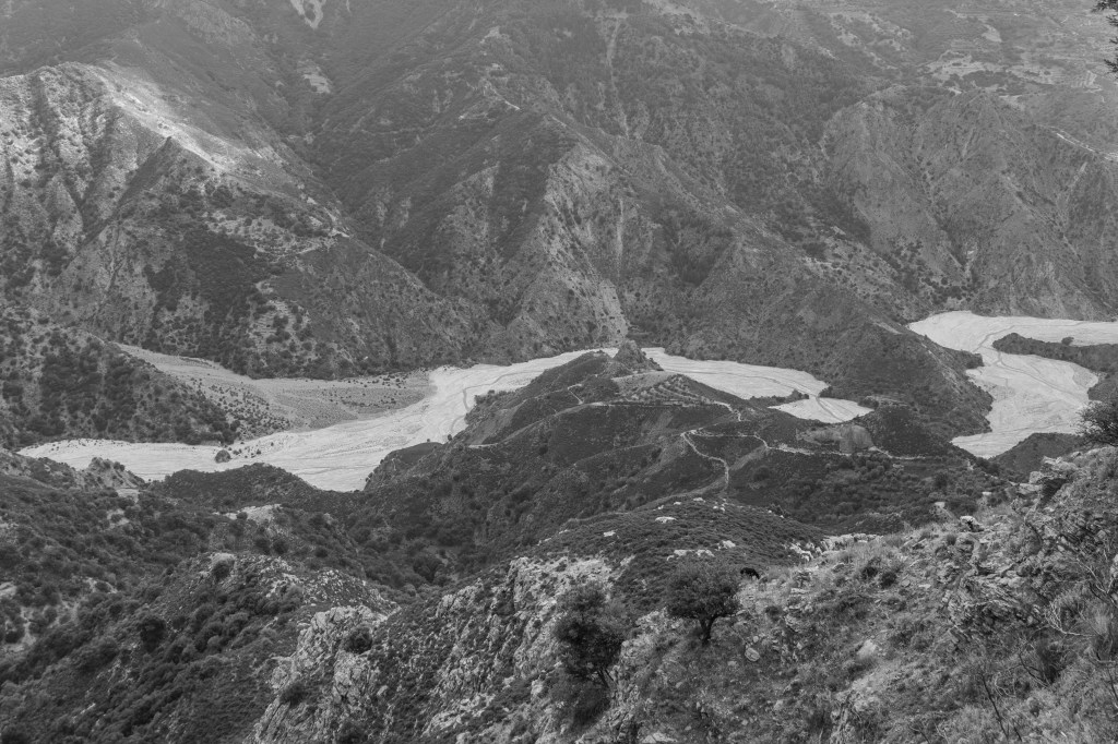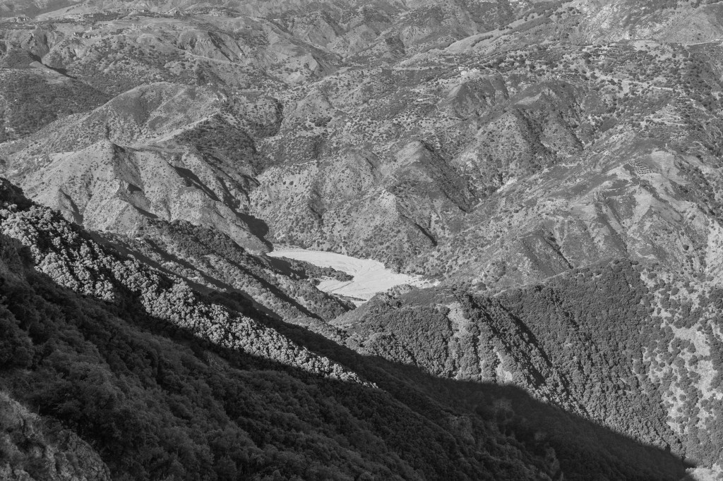 In mezzo alla rigidità delle montagne, la sinuosità del suo percorso appare come una linea viva che taglia il territorio, un tracciato in continua trasformazione. Accanto alle forme naturali emergono i segni dell’uomo – piccole infrastrutture, tracce d’uso, tentativi di attraversamento – che si sovrappongono a questo spazio antico senza mai riuscire a dominarlo davvero. La Fiumara diventa così un luogo di tensione e di dialogo: tra natura e umanità, tra permanenza e mutamento, tra la memoria della terra e le nostre incursioni nel suo corpo di pietra.