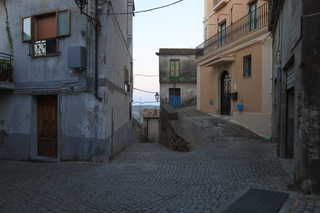 È pomeriggio. Lascio la statale 106, direzione Melissa. Mi addentro verso l’entroterra calabro, direzione: colline del vino Cirò. Arrivando alle pendici del paese, all’inizio dei tornanti, noto uno scenario caratteristico della zona: case rovinate, abbandonate, con i ferri che fuoriescono – non si sa mai che si debba costruire un piano in più, poca attenzione e cura per l’esterno, sembra quasi un luogo abbandonato. Continuo a salire, parcheggio la macchina “ara’chiana”, scendo e inizio a camminare lungo le stradine ripide e strette del borgo antico. Noto poche persone con cui scambiare due chiacchiere, tutte anziane, non ci vivono più in molti. Immagino bambini correre su e giù per il borgo, giocare a nascondino, andare in piazza a prendere il gelato al bar di Franco e fare due tiri al pallone sperando che non vada in strada. Ormai sta tramontando il sole, decido di tornare su, verso la piana degli angeli, verso il castello, sulla cima della collina, lo scenario architettonico rimane pressoché identico, ma intorno vedo colline, pale eoliche, mi volto e laggiù in fondo vedo il mare, lo Jonio. Mi godo questo paesaggio, la calma e il silenzio che gli appartengono.