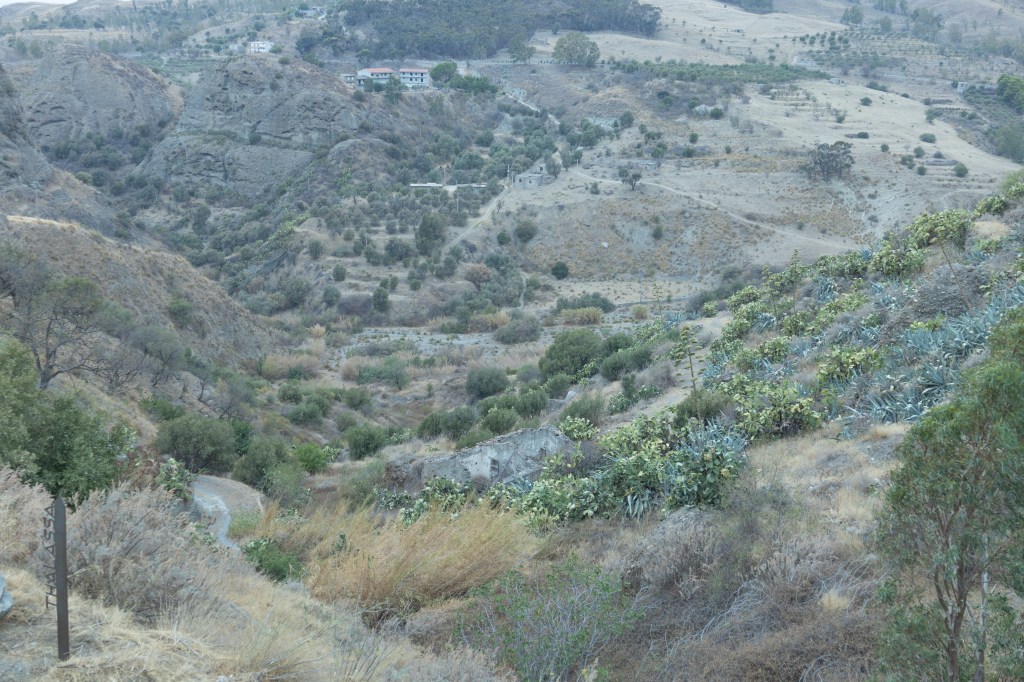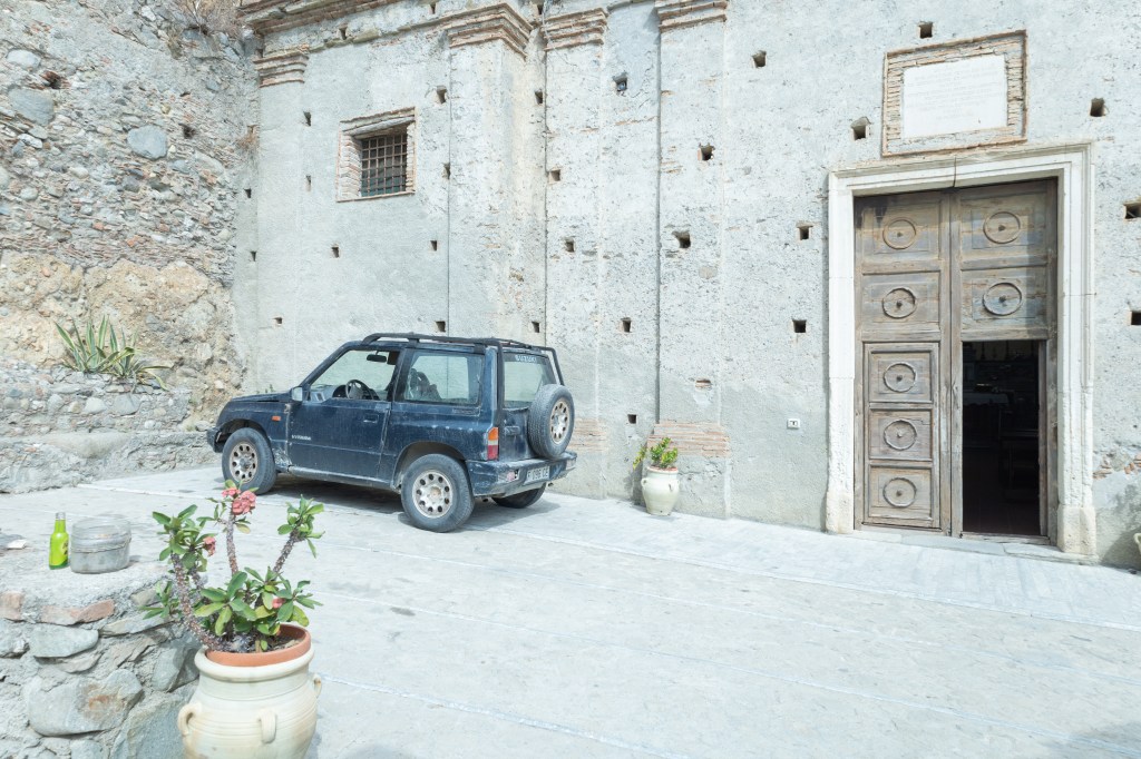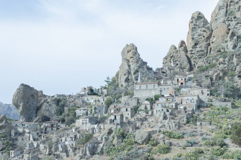 Nell’entroterra, come spesso accade in Calabria, troviamo un paese abbandonato, letteralmente abbandonato. Un paese ormai dedito al commercio di piccoli artigiani con le loro botteghe, tra questi ce ne sono tre che vivono il paese anche come inquilini.